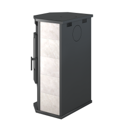 Снаружи печь отделана керамической плиткой. Для ускорения движения воздуха и прогрева помещения между облицовкой и корпусом печи устроены щелевидные конвекционные каналы.
