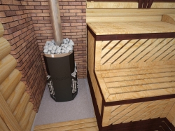 Вместительная вентилируемая каменка является мощным парогенератором. Большое количество качественно нагретых камней, обеспечивает стабильность температуры в парилке.