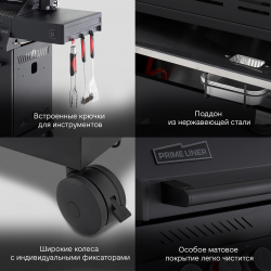 Плюс все классические фишки продвинутого гриля - двойная крышка котла с боковинами из литого алюминия, поддон жиросборника из нержавеющей стали, встроенные крючки для инструментов и усиленные прорезиненные колеса с фиксаторами. Вставки лотка-жиросборника (3шт.) уже в базовой комплектации.